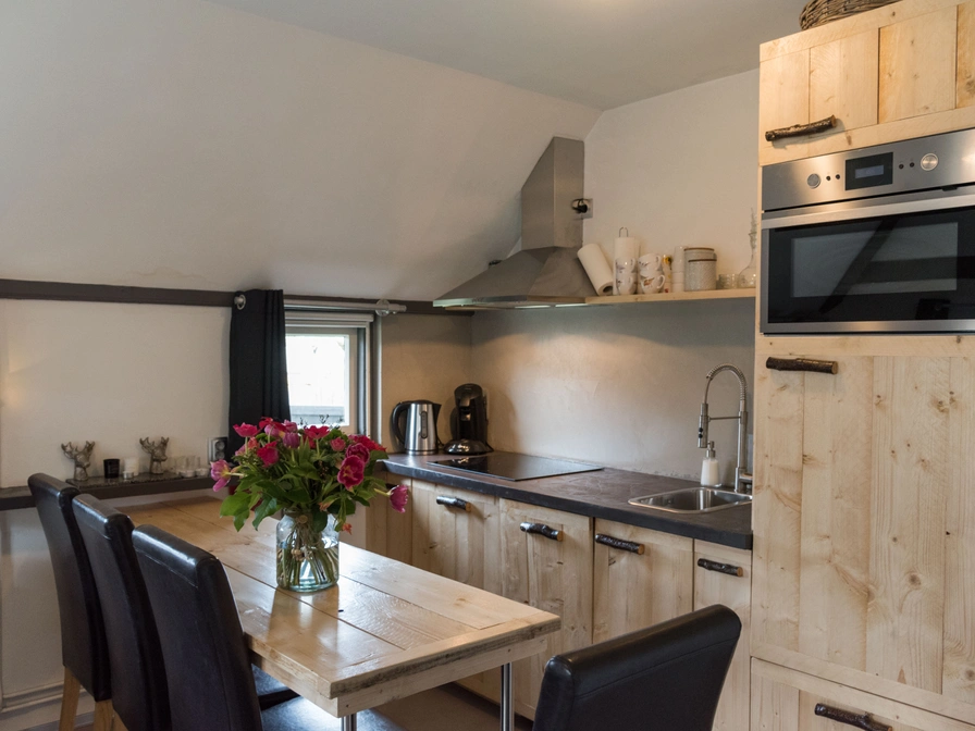 Logeren bij de boer op Terschelling Appartement ingericht voor 4/5 personen aan de noordwest kant van de boerderij Puur Terschelling. Beneden verdieping: Ingang met apart toilet, aparte regendouche. Woonkamer/keuken: laminaatvloer, bankje, eethoek met 5 stoelen en airco. Er is Wifi, TV met netflix. De keuken is ingericht met een inductie kookplaat, afwasmachine, afzuigkap, nespresso, combi oven, koelkast met vriesvakje, rookmelder, brandblusdeken en koolmonoxidemelder. Slaapkamer beneden: laminaatvloer, 3 persoons stapelbed (3x90x200) met wastafel warm en koud water, bedlampjes en airco. Er is een trap naar boven in de slaapkamer en naar de bovenverdieping. Op de bovenverdieping bevind zich een slaapkamer met panorama uitzicht naar de duinen met een 2 persoonsbed (140 x 220) voorzien van airco, badkamer met wastafel, douche en toilet. Alle bedden zijn opgemaakt met hoogwaardig exclusief beddengoed en handdoeken van Optidee (aanraken, voelen, Puur Slapen). Buiten is een beschut privé terras met stortdouche en een hout gestookte hottub. Gebruik van hout gestookte, infrarood sauna en elektrische Weber BBQ/Green Egg mogelijk in overleg tegen meerprijs. Kindermeubilair is aanwezig, kinderbed en kinderstoel. Je kunt gebruik maken van de wasmachine/droger in het sanitair gebouw van de boerderij.