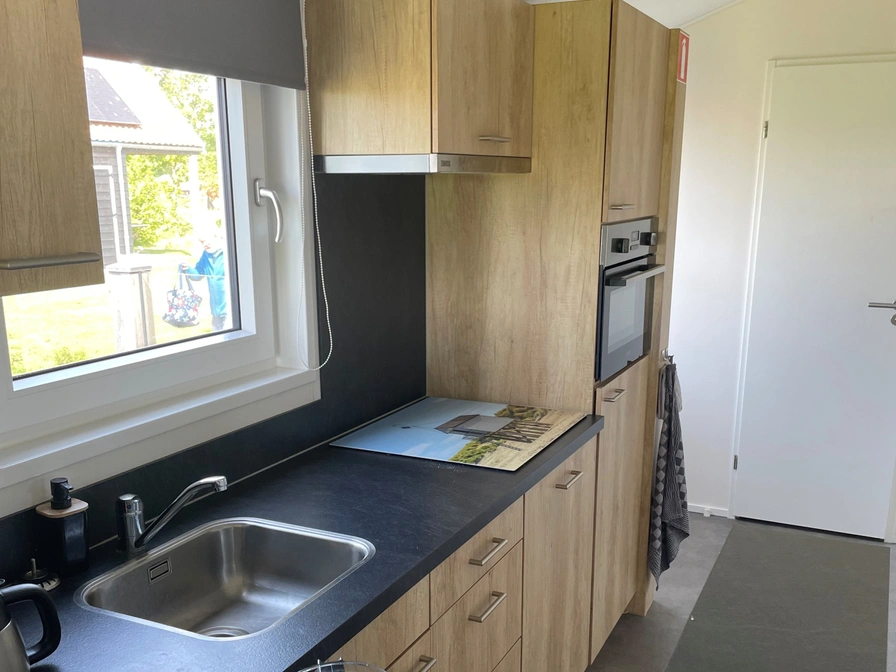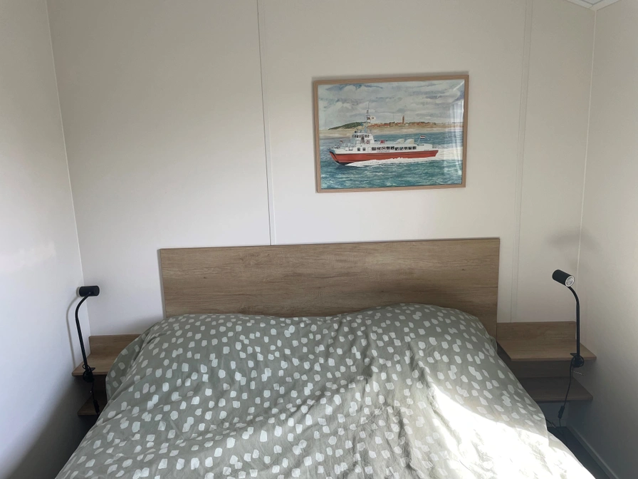 Nieuw duurzaam tiny house van 45m2 op kleine camping in Hoorn en vrij uitzicht over de polder richting de Waddendijk. Woonkamer met 2-zitsbank en 2 fauteuils, open keuken met vaatwasser, combimagnetron, koelkast met vriesvak, inductiekookplaat, koffiezetapparaat, staafmixer en een tostiapparaat en waterkoker. Eethoek met 4 stoelen. Er zijn twee slaapkamers. Beide slaapkamers hebben 2 x 1 persoons box springbedden, nachtkastjes en bedlampjes. Een hang-en legkast met schuifdeuren. Het kinderbed kan staan in de slaapkamer waar de bedden niet naast elkaar staan. Boven één bed hangen twee kasten waar kleding ingelegd kan worden. Het geheel wordt verwarmd door infraroodpanelen. Badkamer met inloopdouche, toilet, wastafel met badkamermeubel en föhn. Aan de zuidkant is een beschut terras met terrasmeubilair. Elektrische fietsen kunnen onder de overkapping staan van het sanitair gebouw. Een middelgrote hond is na overleg toegestaan, mits niet op de bedden en de bank. Het geheel staat op een rustige camping met een heel groot speelveld. Alles ver van alle verkeer.