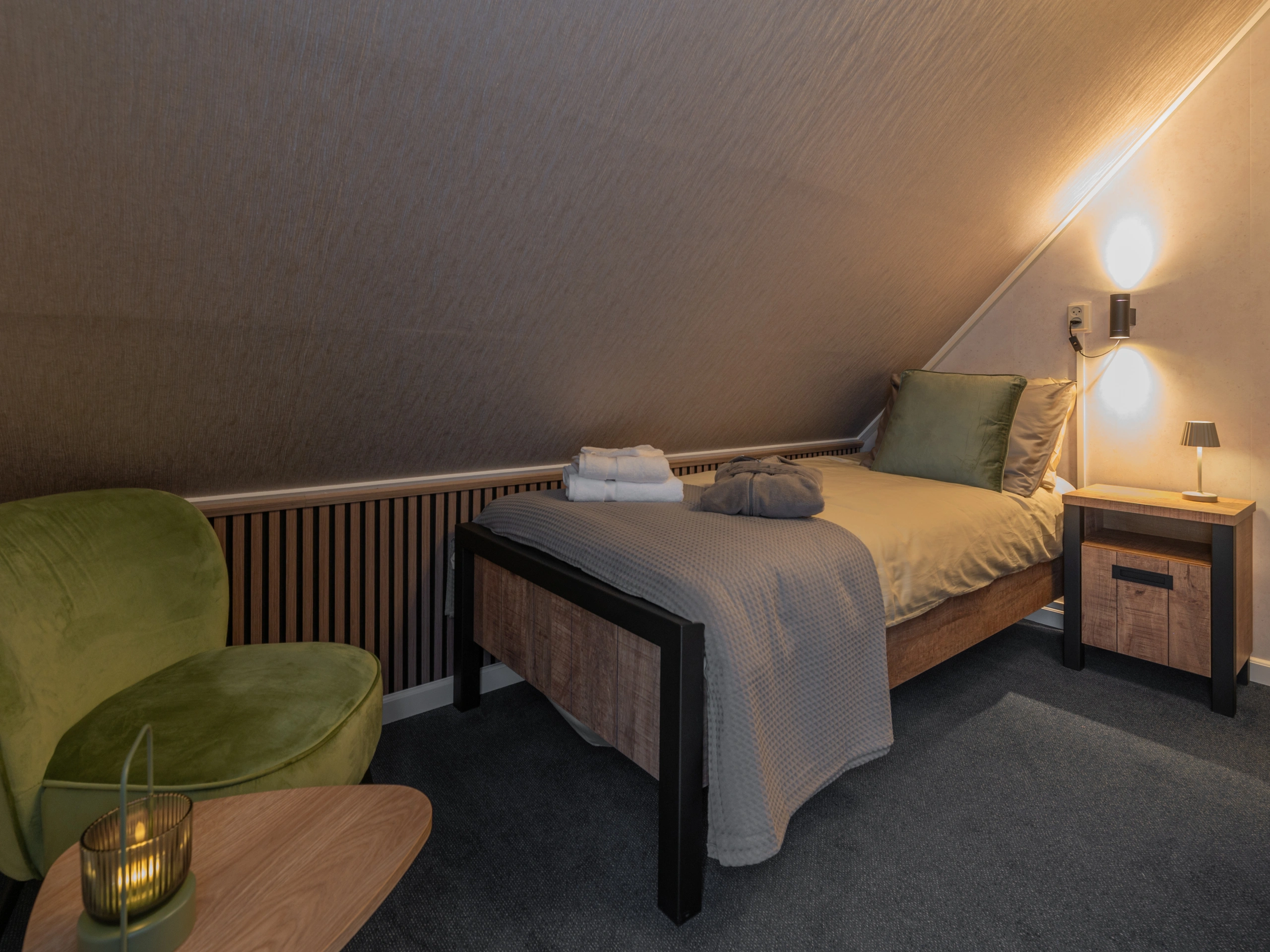 B&B De Wadden – sfeervol logeren in het hart van West-Terschelling. B&B De Wadden ligt net buiten het centrum van West-Terschelling, op een rustige locatie, slechts 2 minuten lopen van gezellige restaurantjes, winkeltjes en terrasjes. De haven bevindt zich op 5 minuten loopafstand en ook het strand en de duinen zijn binnen 10 minuten te bereiken. De karakteristieke Bed & Breakfast beschikt over 9 sfeervolle kamers, verdeeld over twee etages, waaronder 2 eenpersoonskamers. Alle kamers zijn met zorg ingericht in natuurlijke tinten, met comfortabele bedden en aandacht voor detail.