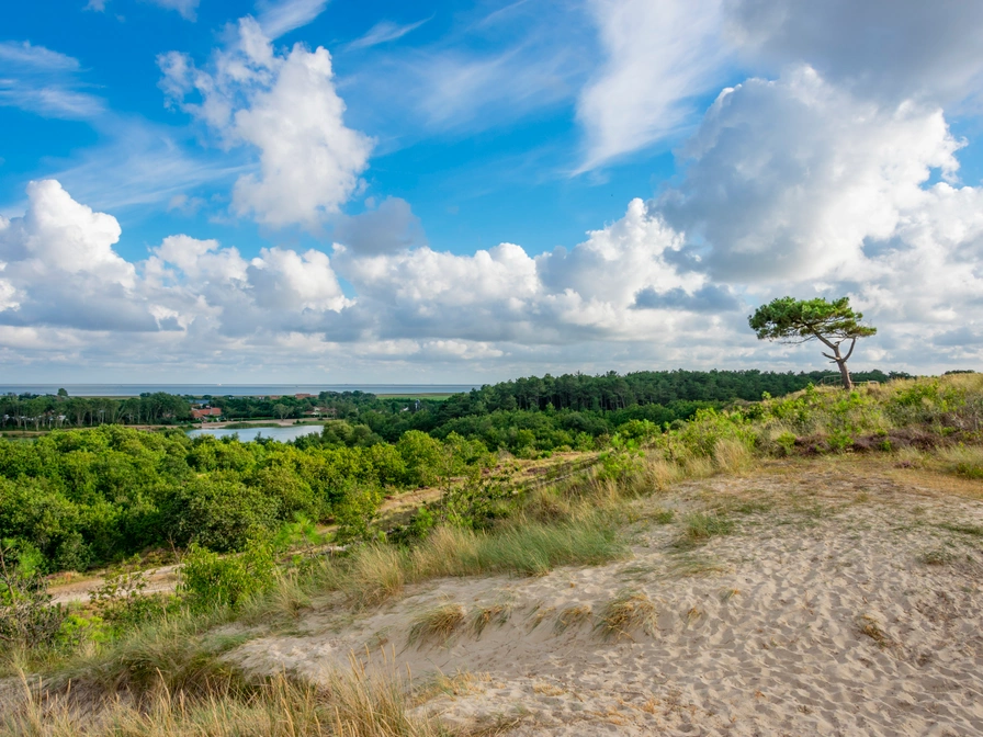 De camping ligt aan de voet van het twintig meter hoge Arjensduin vanwaar je een prachtig uitzicht heeft over de omgeving. Zowel de Noordzee als Werelderfgoed de Waddenzee zijn te zien. De camping grenst aan natuurmonument ‘De Kooibosjes’ en aan het duinmeertje van Hee waarin gezwommen kan worden. Er is hier ook een ondiepe kant afgebakend met ballenlijn waar de kleine kinderen lekker kunnen spelen. De afstand van de camping naar West-Terschelling bedraagt 4,5 km en naar het dorp Midsland twee km. Het strand en het wad zijn slechts tien minuten fietsen.
