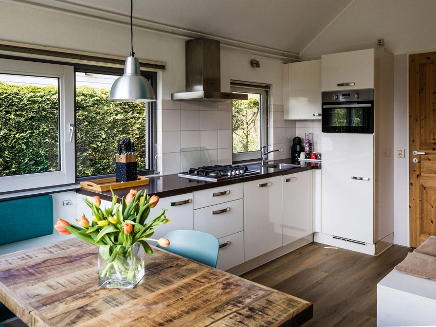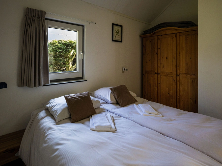 Comfortabel vakantiehuis (55 m²) – gelijkvloers en compleet ingericht. Dit gezellige vakantiehuis is van alle gemakken voorzien en ideaal voor een ontspannen verblijf. De ruime woonkamer heeft een laminaatvloer en is ingericht met een comfortabele hoekbank, fauteuil en televisie. Centrale verwarming en wifi zijn beschikbaar in alle vertrekken. De open keuken is volledig uitgerust en grenst aan de eethoek met vier stoelen. De keuken beschikt over een koelkast, 4-pits kookplaat, afzuigkap, waterkoker, koffiezetapparaat, Dolce Gusto (met diverse cups), broodrooster, vaatwasser en wasmachine. In de hal bevindt zich een apart toilet. De badkamer is voorzien van een douche en een wastafel met warm en koud water. De bungalow heeft twee slaapkamers op de begane grond: Slaapkamer 1: twee eenpersoonsbedden (90 × 200 cm) Slaapkamer 2: twee eenpersoons boxspringbedden (70 × 200 cm) In beide slaapkamers ligt laminaat en er zijn vier eenpersoons synthetische dekbedden aanwezig. Een kinderledikantje en kinderstoel zijn eveneens beschikbaar op aanvraag. Buiten vind je een beschut terras en een tuin rondom de bungalow. Tuinmeubels en ligbedden zijn aanwezig. Parkeren kan op de gezamenlijke parkeerplaats.