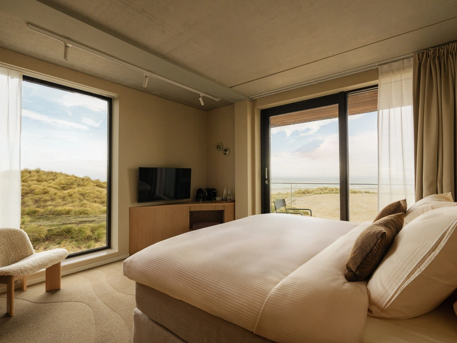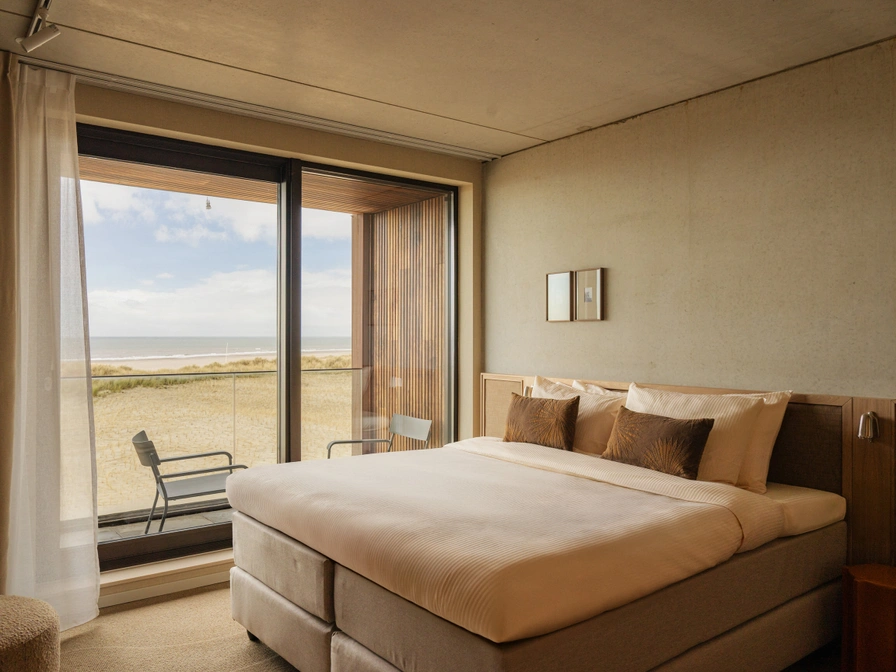 Deze elegante familiekamer bestaat uit twee stijlvolle hotelkamers die door een privé-gang met elkaar verbonden zijn. Wanneer je deze kamers als familiekamer boekt, wordt de gang exclusief voor jouw gezelschap gereserveerd – een intieme en comfortabele setting, ideaal voor gezinnen die samen willen verblijven met behoud van rust en privacy. Perfect voor drie tot vier personen, biedt deze familiekamer alles voor een zorgeloos en luxueus verblijf aan zee. De kamers bevinden zich in de kopse kant van het gebouw, op de derde en vierde etage, en onderscheiden zich elk door een uniek karakter. Afhankelijk van de verdieping varieert de oppervlakte van 15 tot 30 m²: de kamers op de derde etage zijn ruimer, terwijl de kamers op de vierde etage een royaal balkon bieden. Op ieder balkon wacht een stijlvol zitje, waar je samen geniet van een panoramisch uitzicht over de zee en het altijd veranderende licht boven het water. Elke kamer is uitgerust met een luxe boxspringbed en hoogwaardig bedlinnen dat garant staat voor een weldadige nachtrust. De moderne badkamers zijn voorzien van een inloop-regendouche, zachte handdoeken, comfortabele badjassen en slippers, een haardroger en de verfijnde verzorgingsproducten van Zenology®. Voor extra gemak beschik je over gratis WiFi, een Smart-TV, koffie- en theefaciliteiten, een mini-koelkast, laptopkluis en garderobekast.