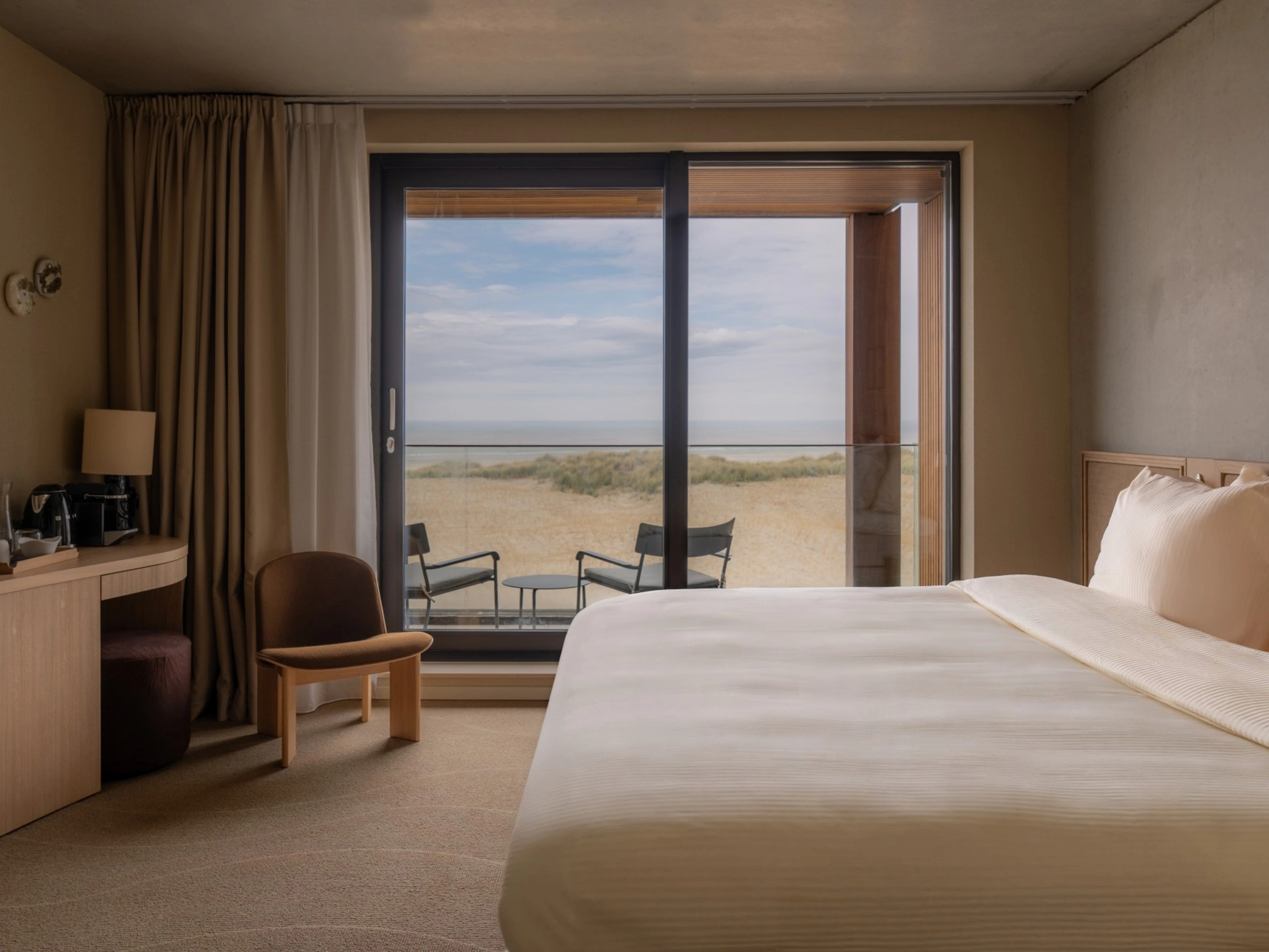 Deze elegante hotelkamer is ideaal voor één of twee personen en biedt alles voor een comfortabel en ontspannen verblijf aan zee. De kamers bevinden zich op de kopse kant van het gebouw, verspreid over de derde en vierde etage, en onderscheiden zich ieder door een eigen karakter en uitstraling. Dankzij de ligging geniet je in alle kamers van een vrij uitzicht op zee. Elke kamer is ingericht met een luxe boxspringbed van 180x200 cm en hoogwaardig bedlinnen voor een weldadige nachtrust. De moderne badkamer is uitgerust met een inloop-regendouche, zachte handdoeken, comfortabele badjassen, slippers, een haardroger en verzorgingsproducten van Zenology®. Daarnaast beschikt de kamer over gratis WiFi, een Smart-TV, koffie- en theefaciliteiten, een mini-koelkast, een laptopkluis en een garderobekast.