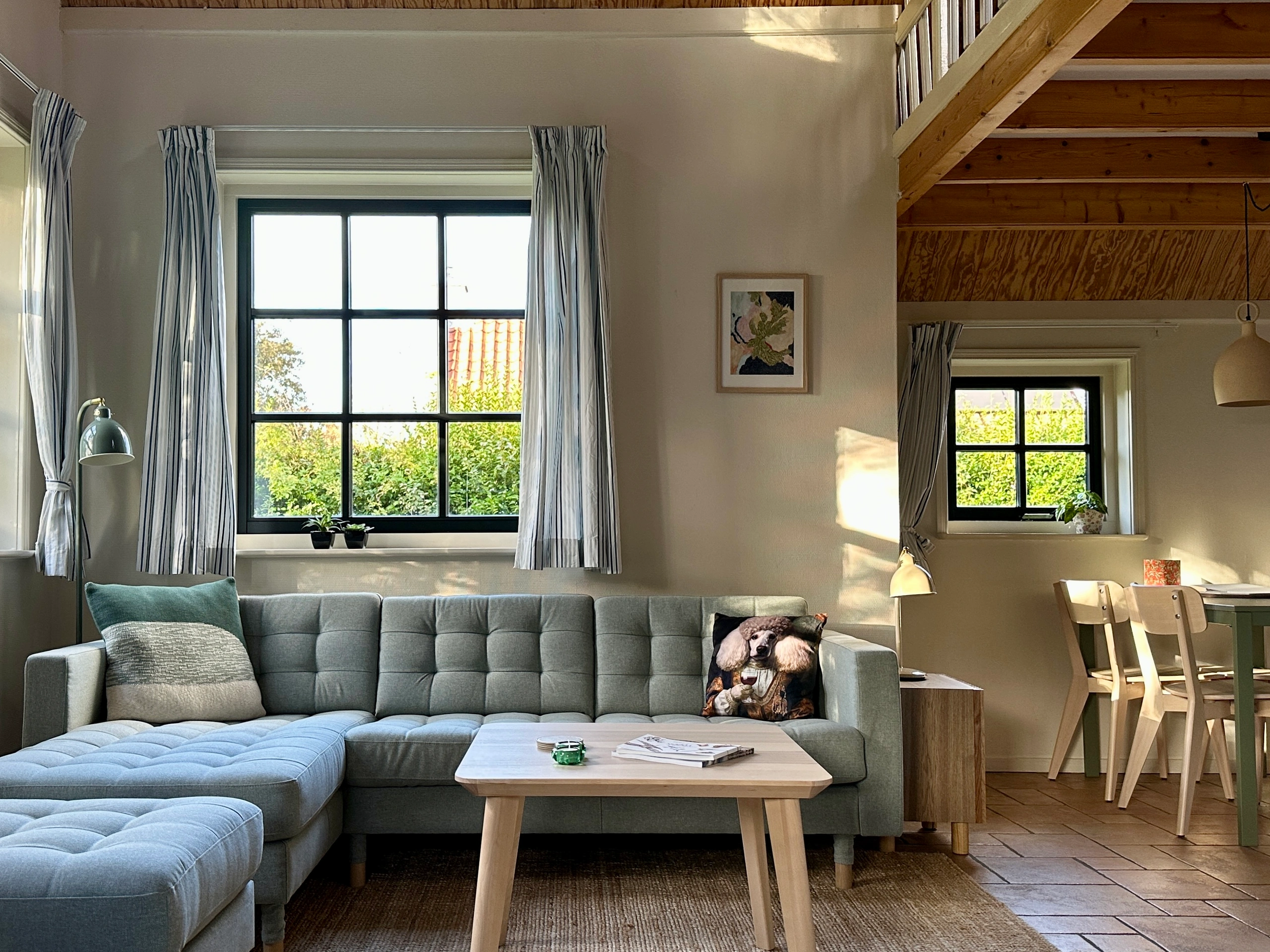 Schlafplätze im Zwischengeschoss Die zusätzlichen Schlafplätze sind über eine Müllertreppe erreichbar. Aufgrund der offenen Bauweise sind diese nicht für Kleinkinder geeignet. Reinigung Bitte hinterlassen Sie die Reinigungsgebühr bei Ihrer Abreise in der Unterkunft. Bettwäsche Bettwäsche und Handtücher sind nicht im Preis inbegriffen. Sie können Ihre eigene mitbringen oder diese bei einem Wäscheverleih auf der Insel mieten, zum Beispiel bei Linnenservice Terschelling oder Wassalon van 't Leven in Midsland. Hund Maximal ein Hund ist im Forget Me Not gegen Gebühr erlaubt.
