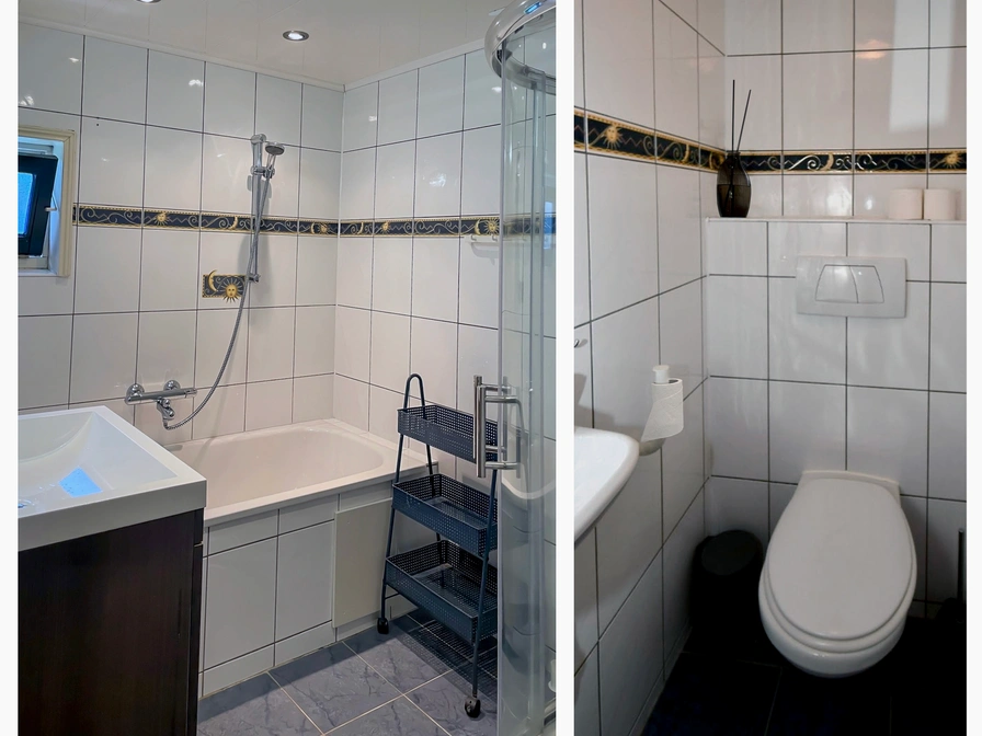 Nach einem Wattspaziergang erreichen Sie Ihr Ferienhaus Gele Lis. An der Tür wartet ein Schuhständer, damit nasse Schuhe trocknen können, bevor Sie eintreten. Hängen Sie Ihre Jacke im Eingangsbereich auf und betreten Sie anschließend das helle, 30 m² große Wohn-/Esszimmer. Es verfügt über einen Fliesenboden mit Fußbodenheizung und einen gemütlichen Gaskamin. Hier finden Sie ein geräumiges Dreisitzer-Sofa, Loungesessel und einen Essbereich mit Platz für vier bis sechs Personen. Zum Entspannen steht Ihnen ein Smart-TV mit Zugang zu Ihren Streaming-Diensten und eine Sonos-Box zur Verfügung, die sich ganz einfach per Bluetooth mit Ihrem Smartphone verbindet – ideal für Musik, Podcasts oder Ihre Lieblingssendungen. Die Küche ist komplett ausgestattet und bietet alle Annehmlichkeiten: ein 4-Flammen-Cerankochfeld mit Dunstabzugshaube, einen Kühlschrank mit Gefrierfach, einen Backofen, eine Mikrowelle, einen Geschirrspüler, eine Waschmaschine, eine Kaffeemaschine und einen Wasserkocher. Im Erdgeschoss befindet sich das Schlafzimmer mit zwei 90 x 200 cm großen Boxspringbetten, jeweils mit bequemen Einzelbettdecken und einer Tagesdecke. Zu beiden Seiten des Bettes befinden sich Nachttische mit Leselampe und Steckdose. Ein zweiter Fernseher ist ebenfalls vorhanden. Das Badezimmer grenzt an das Schlafzimmer und verfügt über eine Badewanne und eine separate Dusche. Die Toilette befindet sich daneben. Die Treppe im Wohn-Esszimmer führt ins Zwischengeschoss. Hier finden Sie den Wäscheständer und den Hochstuhl mit Laufstall. Hinter der Tür befindet sich das zweite Schlafzimmer mit zwei weiteren Betten, ausgestattet mit den gleichen Betten und der gleichen Bettwäsche wie im Erdgeschoss. Draußen erwartet Sie ein sonniger Garten mit einem Loungesofa, Stühlen, Kissen, einem Couchtisch und einem Sonnenschirm. Genießen Sie Ihre Mahlzeiten im Freien am Picknicktisch und lauschen Sie dabei dem Vogelgezwitscher im Gebüsch. Sie können auch drinnen im Essbereich im Wohnzimmer speisen. Nachdem Sie die Hauptstraße verlassen haben, finden Sie den Parkplatz des Hauses, der für ein Auto geeignet ist. Sie finden ihn gleich hinter dem Haus auf der linken Seite. Von hier aus führt ein gepflasterter Weg um die Ecke zur Eingangstür des Ferienhauses Gele Lis.