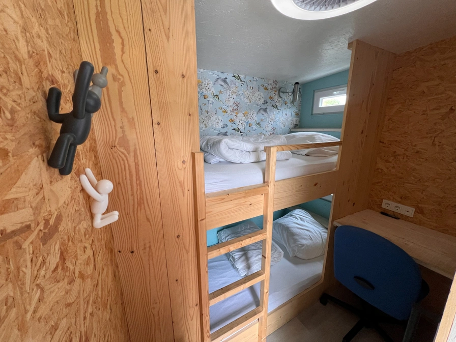 Schönes Chalet mit Klimaanlage. Auf einem ruhigen Familiencampingplatz „Hoeve t Noord“ in Midsland Noord. Der Strand, der Wald und das gemütliche Dorf Midsland liegen ganz in der Nähe. Ideal für ein Paar oder eine Familie mit 2 oder 3 Kindern. Das Chalet verfügt über ein Ecksofa und einen effizienten Essbereich mit Sofa und Arbeitsplatte aus massiver Eiche. Die Küche verfügt über einen Geschirrspüler, einen Wasserhahn mit kochendem Wasser, eine Kombi-Mikrowelle und eine Nespresso-Kaffeemaschine. Draußen gibt es ein Loungesofa, einen XL-Picknicktisch und eine Hängematte. Es gibt auch einen kleinen Arbeitsplatz mit festem Internetanschluss, falls Sie beruflich noch etwas erledigen müssen. (oder spielen wollen) Wir renovieren die alten Schlafzimmer, Fotos folgen, sobald sie fertig sind. Nach der Renovierung gibt es: 3 Schlafzimmer. 1. 1 x 2-Personen-Bett (160x200 oder 2x80x200) 2. 1 x Doppelbett (140x200) 3. 2 x 1-Personen-Bett (90x200); In diesem Schlafzimmer befindet sich auch ein Arbeitsplatz mit festem Internetanschluss. Es gibt 2 Bettdecken für 2 Personen und 4 Bettdecken für 1 Person. Die Dusche und Toilette mit Waschbecken befinden sich im Badezimmer. Im Waschraum des Campingplatzes können Sie eine Waschmaschine und einen Trockner nutzen. An der Rezeption des Campingplatzes können Sie auch Fahrräder mieten.