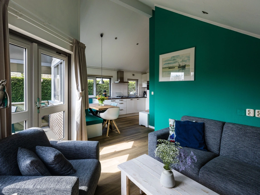Komfortabler Bungalow – ebenerdig und komplett möbliert Dieser gemütliche Bungalow ist komplett ausgestattet und ideal für einen entspannten Aufenthalt. Das geräumige Wohnzimmer verfügt über Laminatboden und ist mit einer bequemen Eckcouch, einem Sessel und einem Fernseher ausgestattet. Zentralheizung und WLAN sind in allen Räumen verfügbar. Die offene Küche ist komplett ausgestattet und grenzt an den Essbereich mit vier Stühlen. Zur Ausstattung gehören ein Kühlschrank, ein 4-Flammen-Herd, eine Dunstabzugshaube, ein Wasserkocher, eine Kaffeemaschine, eine Dolce Gusto (mit verschiedenen Kapseln), ein Toaster, ein Geschirrspüler und eine Waschmaschine. Das Badezimmer verfügt über eine Dusche, ein Waschbecken mit Warm- und Kaltwasser sowie eine Toilette. Der Bungalow verfügt über zwei Schlafzimmer im Erdgeschoss: Schlafzimmer 1: 5,8 m², zwei Einzelbetten (90 × 200 cm) Schlafzimmer 2: 4,5 m², zwei Einzelbetten mit Lattenrost (70 × 200 cm) Beide Schlafzimmer sind mit Laminatboden und vier Einzelbettdecken mit Kunstfaserfüllung ausgestattet. Ein Kinderbett und ein Hochstuhl sind ebenfalls vorhanden. Draußen finden Sie eine überdachte Terrasse und einen Garten, der den Bungalow umgibt. Gartenmöbel und Liegestühle stehen zur Verfügung. Parkplätze stehen auf dem privaten Parkplatz neben dem Bungalow zur Verfügung.