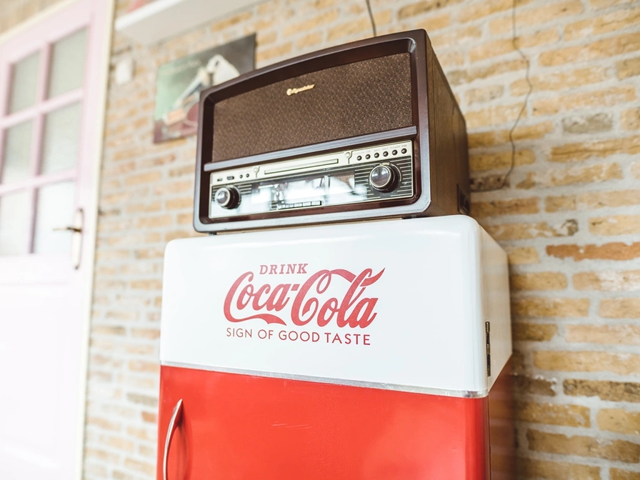 Furnishing in the style of the fifties and sixties, including jukebox and record player.