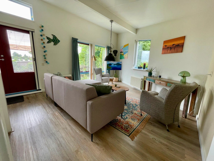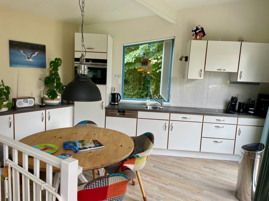 Spathoek is a detached modern 4-person holiday home (split level) in Midsland Noord. There is a spacious garden around the house, enclosed by trees and shrubs with lots of privacy. There is always sun or shade to be found. Spathoek is located on the border of meadows and the Landerumerheide. At Midsland Noord, near the Formerumer forest. The distance to the beach and mudflats is approximately 1500 meters. The villages of Midsland and Formerum are a few minutes' cycling distance away. The house has recently been modernized. One pet is welcome upon consultation. Spathoek is part of a small, intimate holiday park “de Bosch” of 11 holiday homes. There is a private parking space at the house. Charging stations for electric cars are located 1 km from the house. As soon as you enter the house, a carefree holiday can really begin. Through the entrance you enter the hall, the toilet is located right next to the front door, the bathroom has a luxurious walk-in rain shower and a spacious sink. The washing machine and dryer are in the utility room. You enter the spacious, bright living room via two steps. The cozy seating area overlooks the garden and is equipped with a large flat-screen smart TV with extensive Ziggo package and a DAB radio. The modern kitchen-diner is equipped with an induction hob, dishwasher, convection oven, microwave, fridge-freezer combination, Nespresso machine and filter coffee maker. Via a staircase to the basement you reach the two spacious bedrooms. The bedrooms both have a double bed. An Auping and a box spring bed. The beds have single pocket spring mattresses and single duvets. There is an extra sleeping chair in one of the bedrooms. Children's furniture is available: a Stokke flexi bath, two cots, two high chairs and a buggy. There is a stair gate for the stairs to the basement. No time to be bored. There are games and books available, including about Terschelling. For a wonderful outdoor stay, there is garden furniture with a parasol and a barbecue.