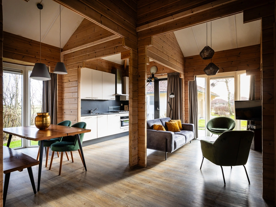 Holiday Park Tjermelân is the ideal location for those seeking peace and quiet and nature, and is an ideal spot for families during the school holidays. It's peacefully situated between the dunes and the polder on the east side of Terschelling, just a stone's throw from the Boschplaat Nature Reserve, the Wadden Sea, and the North Sea. There's a good chance of sunny days, as Terschelling receives an average of twice as much sun as the mainland. Holiday Park Tjermelân is a modern, versatile, and child-friendly bungalow park with a variety of luxury chalets, apartments, and bungalows. Several bungalows are situated along the meadows, offering breathtaking panoramic views all the way to the Wadden Sea dike. Many nature lovers visit the park to marvel at the beautiful flora and fauna in and around the park. Want to bring a dog? No problem, the area is perfectly suited for our four-legged friends (maximum 3). Please specify this when booking, as some accommodations are pet-free. The park features a cozy breakfast room with a bread roll and breakfast service. Tjermelân also offers a laundry service, bicycle rentals, and free Wi-Fi. Charging stations for electric bicycles, cars, and mobility scooters are available. Various playground equipment is spread throughout the park, including a fantastic wooden play ship and a large chess set. Furthermore, Holiday Park Tjermelân is smoke- and fireworks-free. The towns of Hoorn and Oosterend are within easy reach. This Wadden Island offers something for everyone in all seasons: stroll along the expansive beaches, explore the dunes and forests, and enjoy the tranquility. Discover the charming villages with their old houses and various cozy cafés and restaurants. Holiday Park Tjermelân offers plenty of space to relax and enjoy a wonderful holiday.